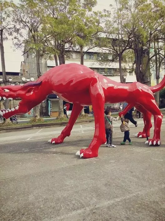 據悉,該裝置藝術在駁二放了數年,是遊客到訪必合影的「風景」之一,有人稱為紅色怪獸,有人叫它紅色恐龍。高雄市文化局表示,引起網友爭議的作品名稱為「大紅人的雜務」,屬園區2013FORMOSA雕塑雙年展的參展作品,創作者為台灣藝術家張乃文先生,是藝術家幽默詼諧的創意表現。