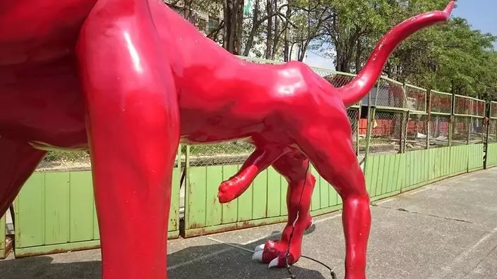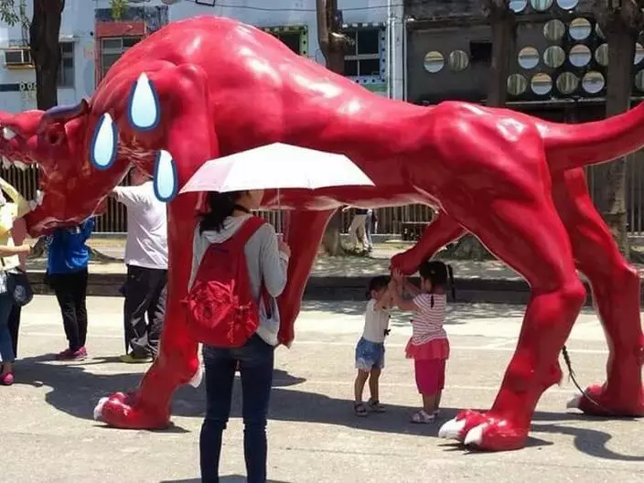 近年台灣各縣市都設置藝術特區,讓民眾能近距離接觸展品。近日有網友前往高雄駁二藝術特區參觀,發現一尊巨大的紅色怪獸裝置,當時有2位小妹妹開心走到下方,伸出雙手把玩起「生殖器」位置,讓在旁觀看的媽媽尷尬不已!