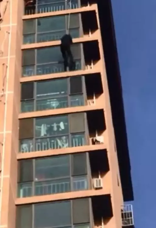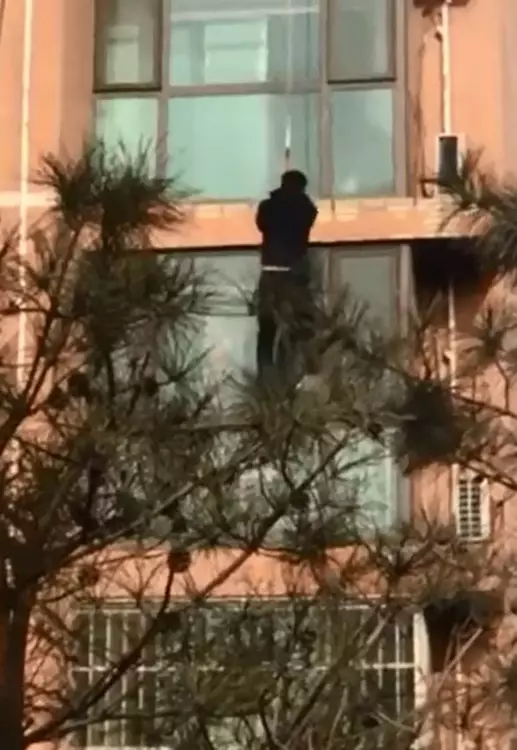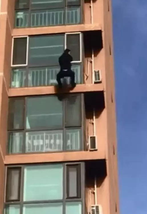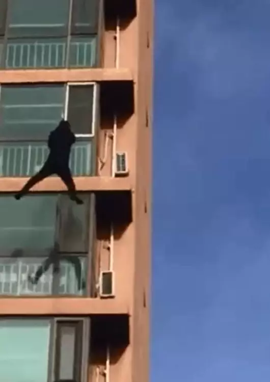 北京有男子在一棟住宅大廈從18樓游繩而下,驚險萬分,原來只是為自己公司的逃生產品「真人示範」做宣傳。