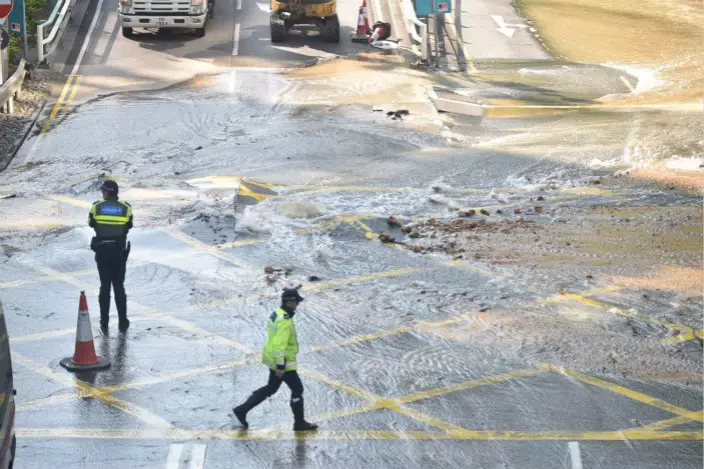水務署表示,該鹹水管用作供應沖廁水予溱岸8號及車公廟站。在關上水掣後,現場已停止湧水。署方說,工程團隊正全力維修,爭取明晚前完成工程並恢復沖廁水供應。