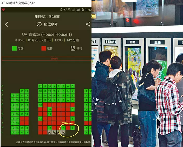 有網民理性分析,「淨計中間,行行都8個位(雙數),咁樓主即係叫人,一個人就唔好揀中間,最好揀最右嘅5或12開始買呀?」「大家都俾(畀)咁多錢,你遲買揀唔到位,關人咩事?」「自由買賣,戲院都冇出聲你憑乜話人?」