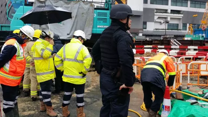 由於天雨路滑,泥土鬆軟,警方擔心炸彈跌下來會引起爆炸,正加緊堆砌沙包。警方爆炸品處理課人員正在現場處理,消防亦到場戒備。