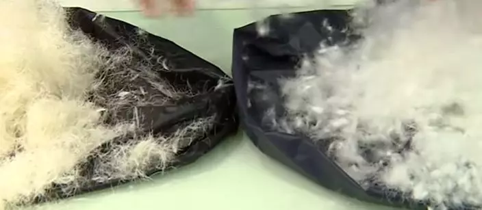 兩者手感同樣柔軟細膩難以分辨,除了要到可靠商戶購買,另一個比較簡單方法是測試回彈力。貨比三家,會感覺到羽絨壓下去後數秒鐘就回彈至原本的形狀,但相比較之下,羽絲就不會那樣快,原因也跟絨子本身屬立體球狀,而羽絲一絲絲的形狀有關。