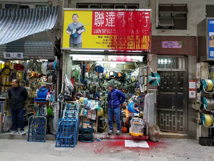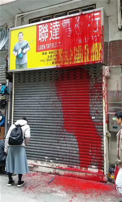 灣仔五金店被潑紅油。