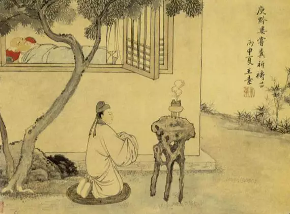 《二十四孝嘗糞憂心圖》 (網上圖片)