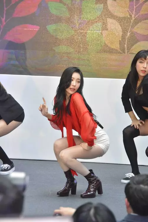 收到宣美來港的消息,現場早已引來超過400名粉絲守候。宣美上台就先以「新年快樂」向一眾粉絲打招呼,認真識做。身穿半透紅色襯衫,加上白色熱褲的她,其後更演唱3首熱門歌,包括《24 hours》、《Gashina》及最新主打歌《Heroine》,大騷白滑長腿,美麗得來又性感。