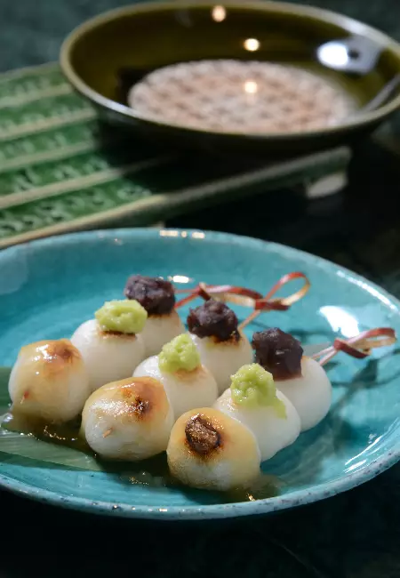 傳統三色糰子味道有紅豆、枝豆和甜豉油,小巧別致。