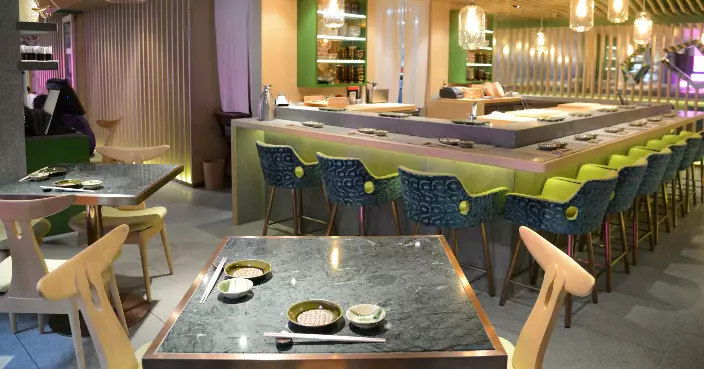 「魚有魚味」在中環這個高檔美食集中地開店,裝潢處處顯得綠意盎然,設計師希望客人有由竹林走到海洋的感覺,因此選用藍色和綠色為主調,設有可愛魚形餐桌和魚鱗式抱枕。