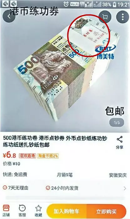 內地網購平台「淘寶網」商品五花八門,其中有一種被稱作「練功券」,外貌仿照各地不同紙幣(包括本港),聲稱供內地銀行職員練習用手數錢,亦有人特意買來收藏,以一紮紮出售,其中100張500港元的價格只需約6元人民幣。