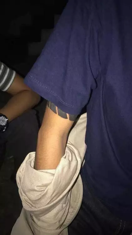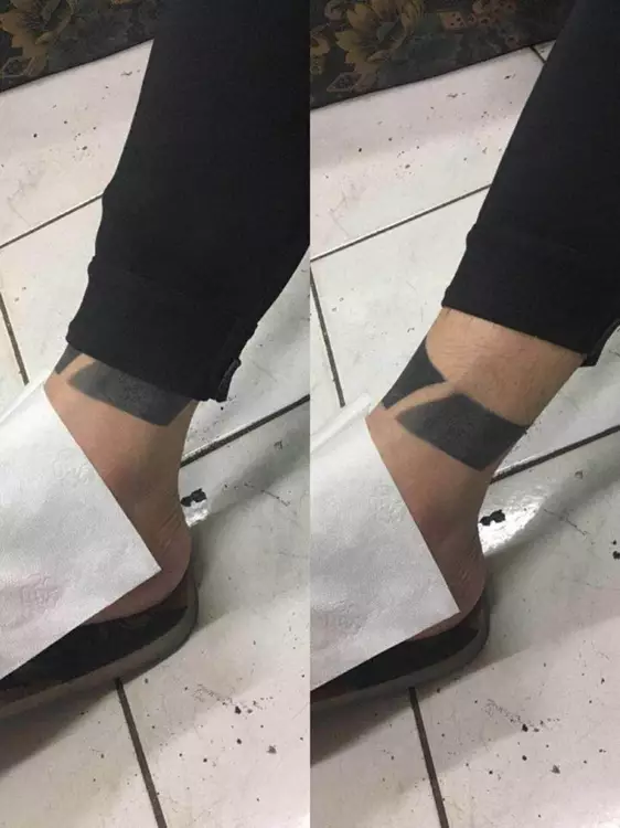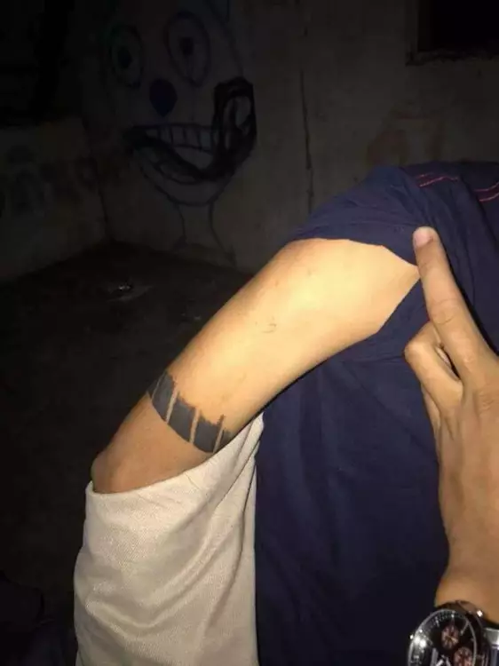 照片中,一名男子身穿藍色上衣,若隱若現的紋身剛好在袖口位置,令人覺得該男子擁有令人震撼的半甲紋身。但下一張照片則令人哭笑不得,男子的袖口被掀起,原來他並非擁有半甲紋身,而是只紋了小小一環,只是令人有錯覺的「偽半甲紋身」!