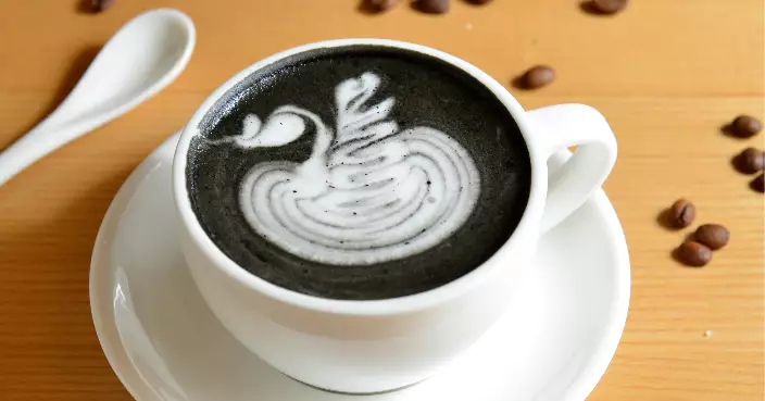 最特別的是咖啡並非「啡色」,而是變成黑色,原來他加入竹炭粉,還有可愛白天鵝拉花圖案。