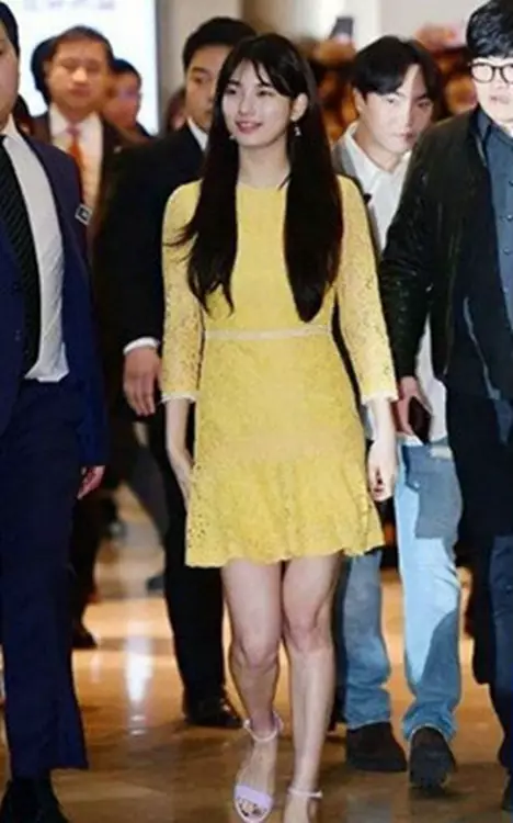 身穿黃色連身短裙的秀智,有愛情滋潤的她,下不時雙手托腮賣萌,看上去很風騷,但似乎化妝及駁髮出事了,有網民批評她肥腫難分,顏值急跌!當然也有力撐秀智依然是美女。