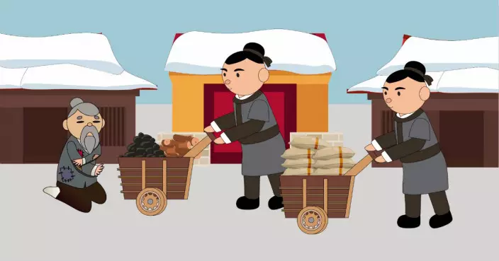 宋太宗下令開封府尹,將炭和糧食,贈送給一些正在挨餓受凍的民眾,以解決燃眉之急。(設計圖片)