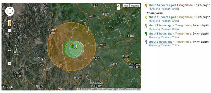 雲南6.5級地震死亡人數增至381人遇難,其中昭通市魯甸縣302人,昭陽區1人;巧家縣66人;曲靖市會澤縣12人。另有巧家縣3人失蹤,受傷的人則有1,856名,並有57,200人需緊急轉移安置。截至上午10點,已錄場得415次餘震。由於災區不斷發生餘震,加上下雨,影響救災進度,傷亡人數恐繼續上升。