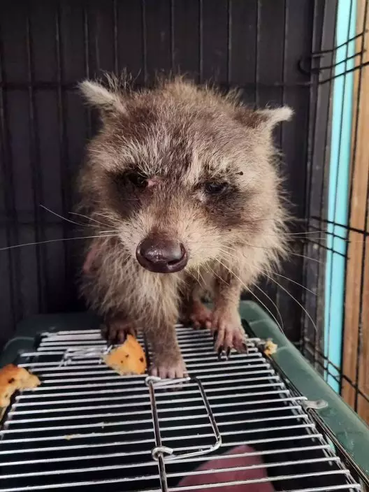 所幸,浣熊在復健中心悉心照料下已開始進食及飲水,狀況逐步改善。雖僅重約7至8磅(約3.2公斤至3.6公斤),但生命力相當頑強,預計需約3個月時間治療疥癬並重新長出毛髮,之後便可重返野外。