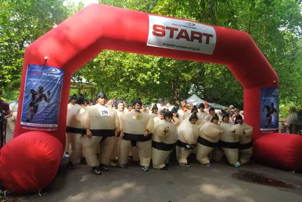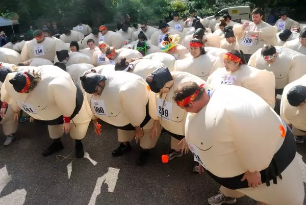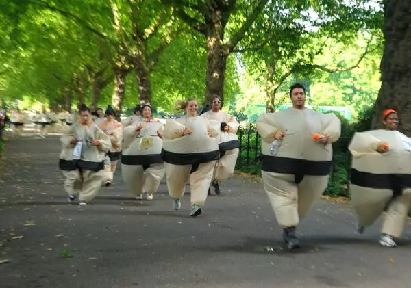 日本新聞網站報道,「相撲賽跑」旨在為非洲撒哈拉以南地區兒童教育籌款。參加者需要身穿充氣相撲服裝,圍繞着倫敦Battersea 公園五公里跑道賽跑。