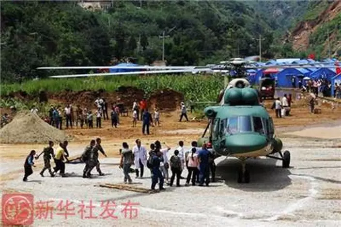 雲南六點五級地震過後,由魯甸通往震央龍頭山鎮的道路多處塌方,雖然部分路段已完成搶修,卻因過多救護車駛往災區導致陸路交通擠塞。陸路不路,6架解放軍直升機將救援物資空投到災區,以解災民燃眉之急。