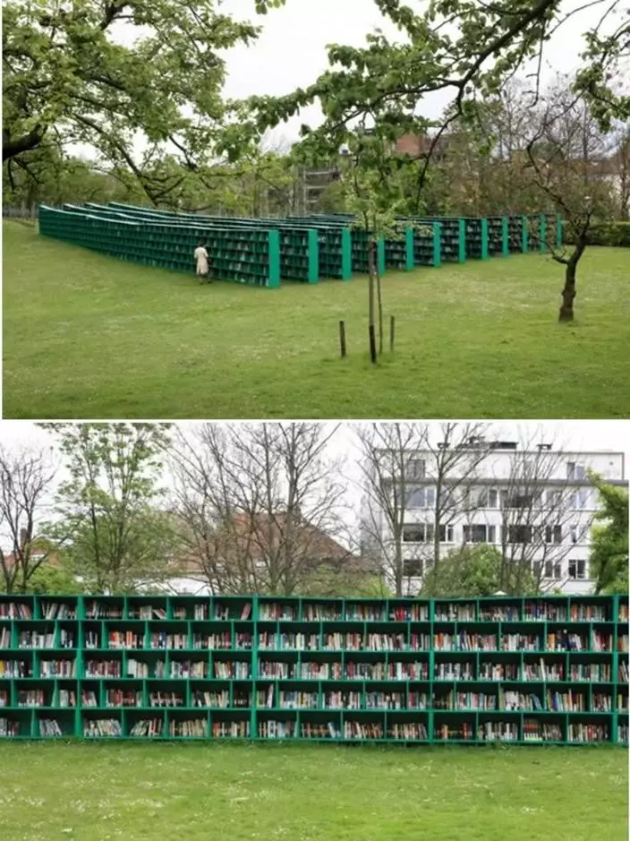 意大利藝術家Massimo Bartolini為藝術節創立露天圖書館,在聖彼得修道院葡萄園中放十二個書架,依着草地斜坡往上排列,讓讀者看書時也能置身大自然。