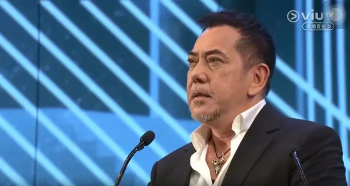 黃秋生說:「各位午安,好多謝金像獎畀呢個機會我企喺度,再同大家見面。 香港嘅步速好快嘅,如果有一個人喺某一個範疇裡面,消失咗兩三年,咁就,好多人都唔知佢係乜水。所以容許我趁呢個機會介紹下我自己先下。我中文名叫黃秋生,意思即係話,雖然黃咗喇,但係喺秋天嘅時候仲有生命跡象咁解,即係好似香港電影咁,好有生命力。我嘅職業,係一個waiter。waiter係電影藝術入面一個專有名詞,意思即係等待者咁解,唔係侍應。咁我等咩呢?等埋位啦等工作啦等運到啦。咁有陣時,我係一個actor,actor又唔係解作行動者咁解,佢係解作演員咁解。但係其實我嘅真正身份,係一個編劇。我上個禮拜同一個老友傾開,話寫劇本最重要嘅元素係咩呢?第一個係出人意表,另一個元素係情理之中,意料之外。 咁我話,出人意表同意料之外咪同一樣嘢囉?佢話唔係,有少少唔同嘅。出人意表係你估唔到嘅,情理之中,意料之外就係,好合理,但你又估唔到。 例如呢,出年仲有冇香港電影呢?嗱,呢個就出人意表,你估唔到0架下。但情理之中,意料之外呢,就係,喂,我哋年年都有香港電影喎,好合理吖!係咪呀?好,我哋睇下候選名單先。」