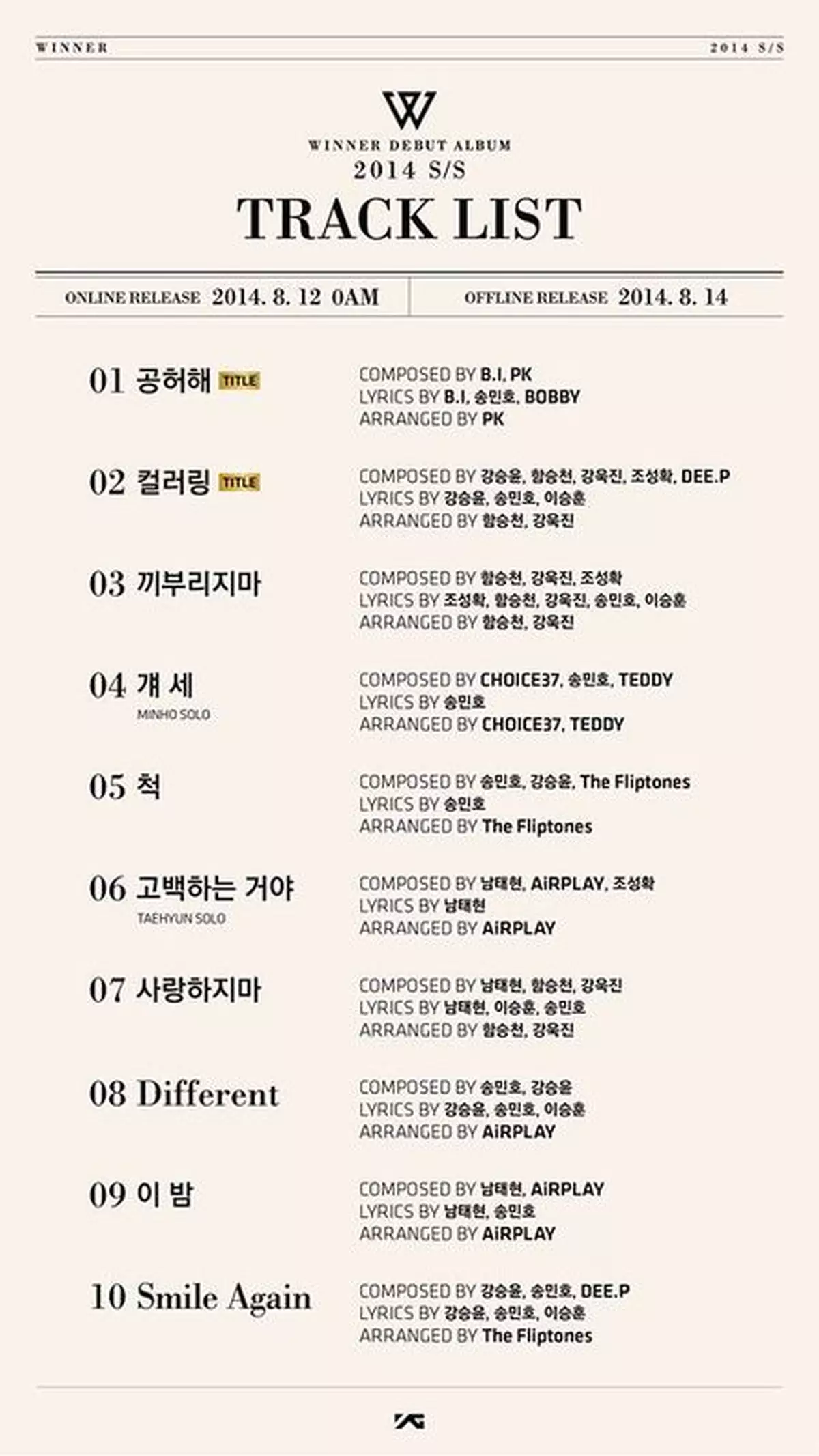 Winner首張專輯將於韓國時間8月12日凌晨公開網上音源及14日實體發售。 而有別以往偶像團體出道日只有一天,YG社長楊賢碩別出心裁地將Winner出道日變成一星期的出道週,並斥巨資為他們辦時裝展。