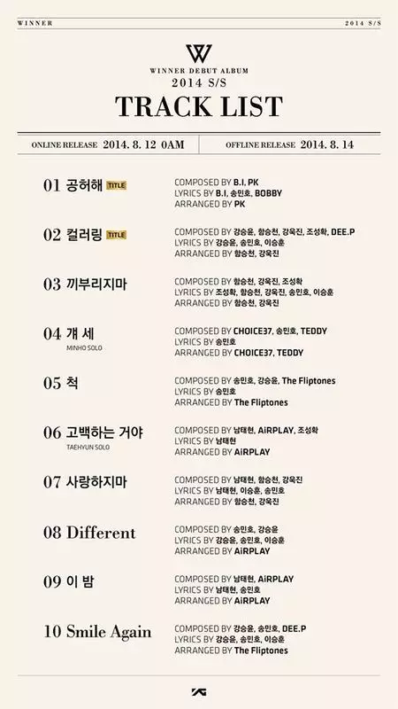 Winner首張專輯將於韓國時間8月12日凌晨公開網上音源及14日實體發售。 而有別以往偶像團體出道日只有一天,YG社長楊賢碩別出心裁地將Winner出道日變成一星期的出道週,並斥巨資為他們辦時裝展。