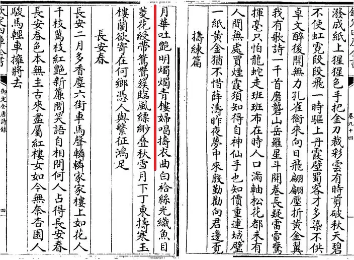 《全唐詩·擣練篇》局部 (網上圖片)