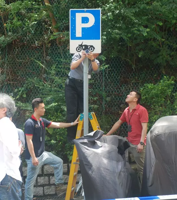 槍械專家首先取出前日在路面拆走的三個「彈痕纍纍」路牌,其中一個「P」(泊車)路牌由探員裝回原來位置,槍械專家以儀器和攝錄機查看與采文樓的距離,以及與懷疑開槍男子住所的角度。現場消息稱,路牌上的部份鉛彈彈痕並非從高空射擊造成,疑有人曾在馬路以該路牌作靶,練習眼界。