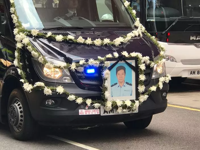 西九龍交通部高級警員林海雲,上月處理一宗交通意外時不幸殉職,警方為林海雲舉行最高榮譽喪禮,昨日在世界殯儀館設靈,今日出殯,遺體將安葬浩園。
