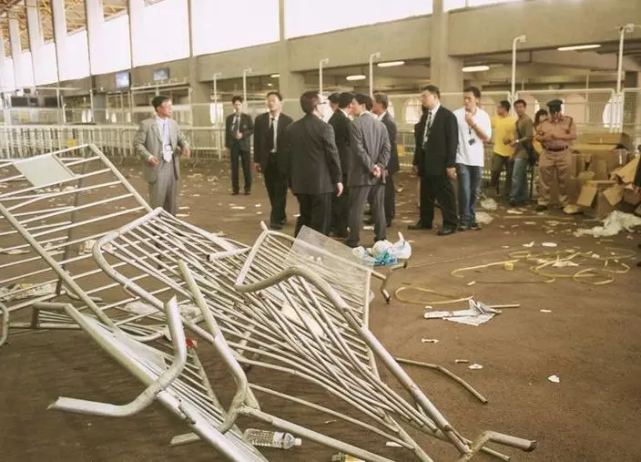 數百人堆疊,釀人踩人致廿多人受傷。