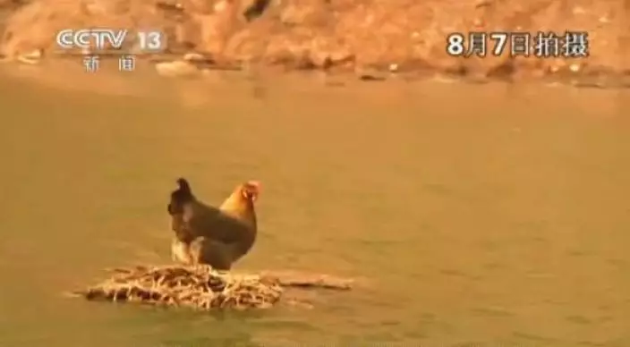 雲南昭通發生的黎克特制6.5級地震,截至至今超過600人死亡、108萬人受災。中央電視台記者與當地村民,昨日前往堰塞湖的壩體拍攝途中,發現一隻倖存的雞,連同身下一個雞窩隨水飄流,當時距離震後已有5天。估計這隻雞在地震時連同雞窩一起被沖到堰塞湖中,最後這隻雞被人救上岸。網民稱之為「雞堅強」。