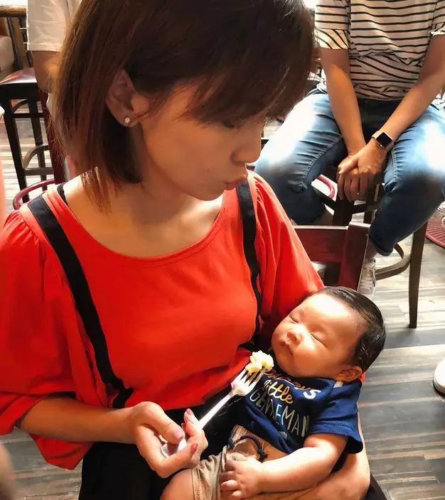 相中Macy抱著的其實是她契仔,她擺出餵睡著了的契仔飲汽水和吃東西的甫士,散發母愛,莫非是想預演做媽咪?另外她又與另一個小妹妹飲同一杯飲品,看來她都很受小朋友歡迎!Macy留言話:「【純粹鏡頭效果】#Crazy契媽#鏡頭重疊效果#寶寶睡得很舒服 #babygathering」看來她非常享受與小朋友相處的時光,網友都催她快點生B!