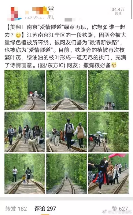 夏天來臨,兩旁的樹木長得非常茂盛,加上「五一」長假開始,相信會有不少民眾慕名前去「打卡」。因此,當地公安在官方微博貼文勸止,更不惜「自暴其短」,貼出多張醜照以顯示所謂的「愛情隧道」只是一條鐵路和兩排樹,勸籲遊客不要前往。