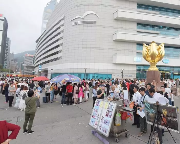 今日是五一黃金周假期展開,料有大批內地旅客抵金紫荊廣場觀光和拍攝,有市民擔心類似打架事件會重演。昨傍晚,已有不少內地團率先抵埗遊覽,有團友清一色穿上旗袍,她們自行拍攝之餘,也有人光顧現場的攝影檔,團友認為公平競爭最重要。