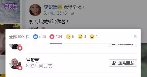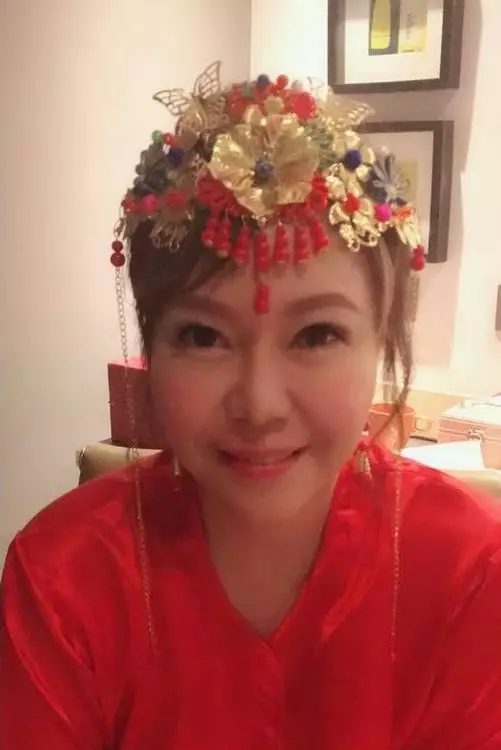偲嫣BB周六在Facebook上傳與丈夫的合照,身穿中式裙褂的偲嫣BB依偎著鋮浚哥,盡晒幸福之情。