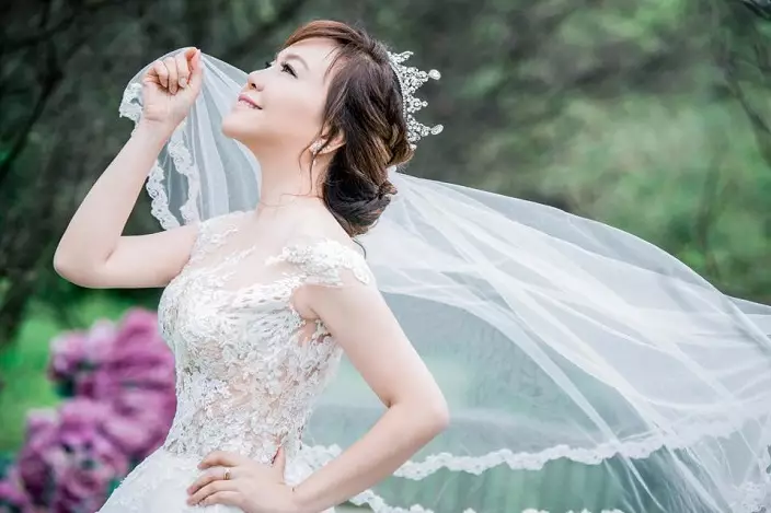 藍絲「女神」偲嫣BB昨日(5日)與鋮浚哥拉埋天窗,於九龍灣舉行婚禮。日前偲嫣BB好大方於個人facebook帳戶發佈谷胸婚紗照,偲嫣BB頭戴皇冠,手持飄逸白紗,側身仰望,偲嫣BB似乎對女神打扮駕輕就熟,仲引得天文台長岑智明都俾心心,大讚偲嫣BB「勁正」!