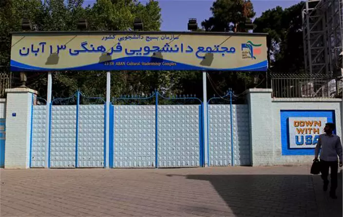 德黑蘭的美國大使館門的右邊,就有打倒美國口號