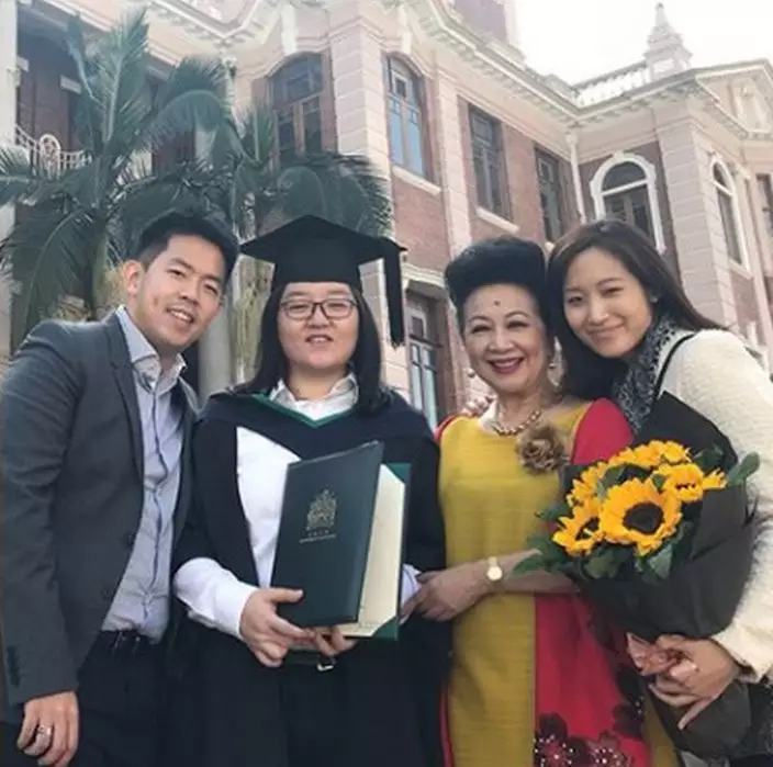 薛家燕的細女石祐珠(左二)去年碩士畢業。(資料圖片)