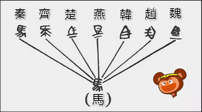 秦始皇統一六國之後,為有以利管治和政策的施行,於是聽從丞相李斯的建議,實行「書同文」政策,統一文字,在大篆為基礎之下,在全國推行一種新的文字,稱之為「小篆」。以「馬」字為例:秦文字的「馬」字有整匹馬的外形,但在齊、魯、燕、趙一帶,「馬」字則只簡化至只餘下馬頭。