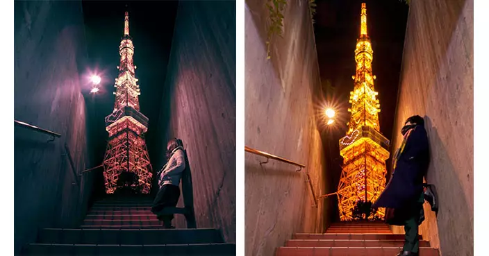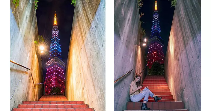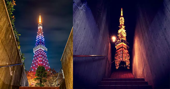 這個隱藏東京鐵塔拍攝點暫時沒太多人知道,所以要把握機會前往打卡~那裏就是「東京鐵塔地下駐車場階段」,即是從鐵塔地下停車場走向地面的樓梯。不但可以將東京鐵塔完整地拍下,再加上樓梯的伸延感,構圖非常漂亮!