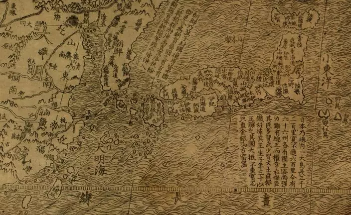 日本重繪明代萬曆《坤輿萬國全圖》對日本的描述 (網上圖片)