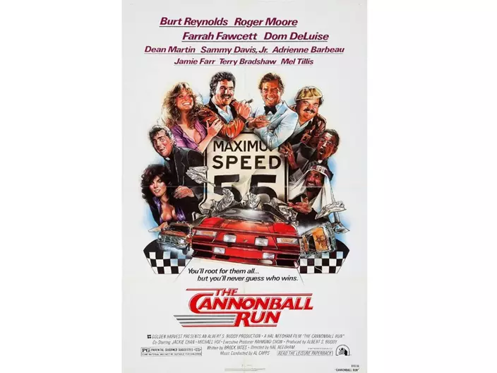 影片在1981年上映時票房成績非常理想,成功登上當年全年北美最賣座電影第6位。《炮彈飛車》系列一共拍了三集,分別於1981年、1984年和1989年上映,成龍也參演了前兩部。電影講述一群來自世界各地的賽車手駕駛著古怪的車輛,參加一場跨越美國東西岸的非法賽車。當年導演Hal Needham喜歡在電影結尾加入NG鏡頭,成龍之後受到啟發,往後在自己的電影中都開始加入NG片段。