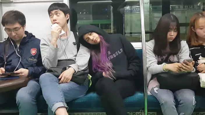 一名旅居南韓首爾的Youtuber 「MeiKCJ」在地鐵上進行了一次實驗,她會裝睡然後靠在身旁的男士身上,看看她的反應會是如何。「歐巴」們起初都是驚訝,然後假裝沒事發生繼續低頭玩手機,但其中一名留著西瓜劉海、戴著眼鏡、微胖的男士被嚇得起身跑走,有網友笑他「機會都給你了,還不好好把握」、「他單身,我也不意外」、「活該單身狗」。亦有人表示同情,「我是肥宅,我懂他跑走的感受,女生碰到都很緊張」。