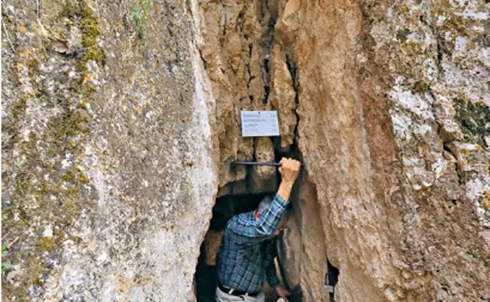 置身延伸至洞穴外的小陽台可眺望山下景致。
