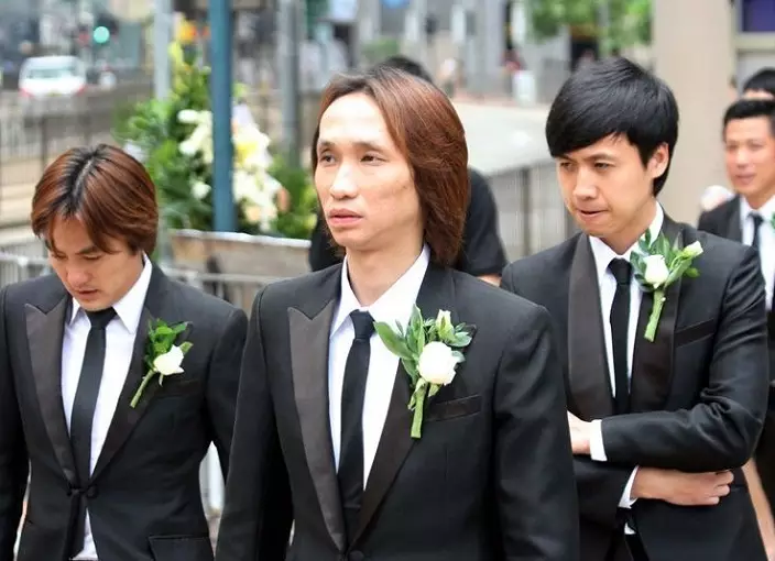(左起)譚兆偉、李春發、馮嘉奇等神情哀傷。資料圖片