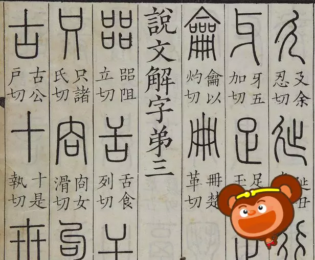 《說文解字》簡稱《說文》,全書共分540個部首,收字9353個,另有異體字1,163個。書中所收的字,是按文字行體和邊旁構造,分為五百四十部。這種偏旁編字法,對後世影響甚大。在詮釋文字時,先說字義,次說形體構造再次為讀音。