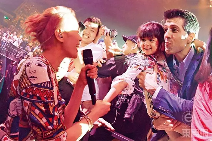 5月初,Gigi在紅館舉行演唱會,Sergio例必捧場,而Sofia則戴上耳筒撐媽咪。(《東周刊》圖片)