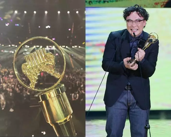 成為首位3奪台灣金曲獎「歌王」的香港歌手陳奕迅(Eason),昨日回港。老婆徐濠縈專誠去「斬料」,一家人食飯慶祝。Eason今日在社交平台分享當時在台上得獎經過時,指自己興奮得拍下獎座的照片,更留言表達那一刻的心情:「難得」