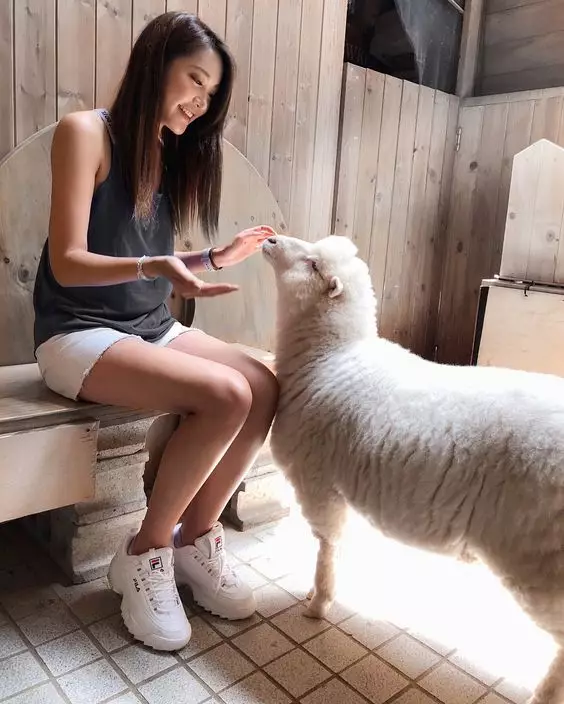 從美欣分享的照片可見,她之前去了一間綿羊Cafe,小綿羊見到美欣手上有食物,不但圍住她,更有隻綿羊興奮撲上她雙修長美腿。此外,美欣去旅行亦不忘做健身keep fit,認真健康。