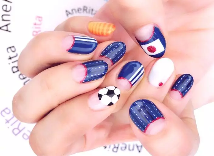 蒼老師連指甲都畫了足球和國旗,撐國家隊撐到行!(網上圖片)
