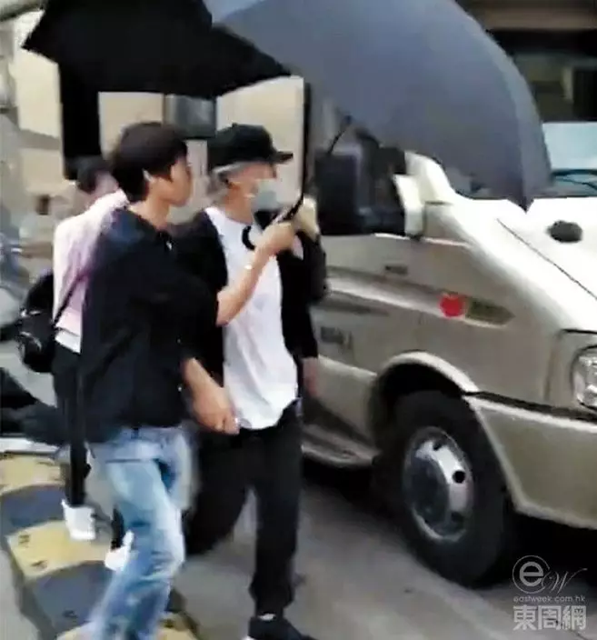 被指容顏變老的星爺,在深圳一個樂園拍戲期間,不僅全身包到冚,還每次出入都出動雨遮陣。(《東周刊》圖片)